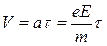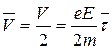 где m – масса электрона; а - его ускорение; τ – время движения электрона между двумя столкновениями. τ называется временем свободного пробега. В результате столкновения с ионом скорость электрона обращается в нуль. Поэтому средняя скорость упорядоченного движения равна: