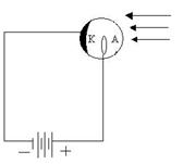 m – масса электрона. Приборы, в основе действия которых лежит явление фотоэффекта, получили название фотоэлементов. Фотоэлементы очень разнообразны по своей конструкции и типу и находят широкое применение в технике. Фотоэлементы с внешним фотоэффектом бывают вакуумные и газонаполненные. Простейший фотоэлемент представляет собой стеклянный баллон, одна половина которого покрыта изнутри металлом, играющим роль фотокатода К. Анод А обычно выполняется в виде кольца (шарика). Между катодом и анодом с помощью источника постоянного тока создается разность потенциалов.