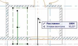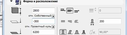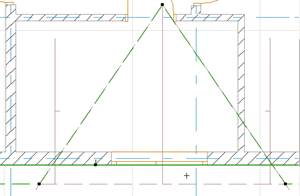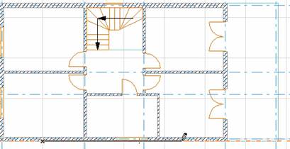 12.Строим фронтон для слухового окна. Для этого перейдём на 3-й этаж – держим Shift+F2 и нарисуем кусок стены, которую потом подрежим. В Параметрах задаём толщину 200мм и устанавливаем курсор в точку пересечения.