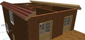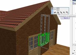 15.Удаляем лишние куски- для этого переходим в план, выделяем построенную стену и перемещаем её на край стены вперед. Далее в 3D-виде выделяем стену и крышу слухового окна и выполняем операцию Подрезать под крышу. Лишние куски исчезли.