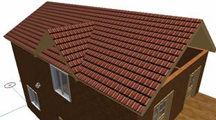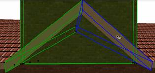 6. Мы получили два куска крыши и их надо состыковать. Для этого выделяем верхний кусок крыши, нажимаем и держим Сtrl и щелкаем на противоположний кусок крыши, он удлиняется до середины. Выделяем его и выполняем тоже самое с другой частью крыши, переходим в 3D-вид.