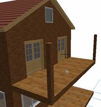17. Cтроим навес над балконом. Сначала построим колонны, высотой 2300мм. Переходим этажом ниже, выбираем инструмент Колонна, переходим в Параметры и задаём высоту 2300, материал –кирпич красный. Далее задаём точки привязки - правый нижний угол и правый верхний угол и строим колонны