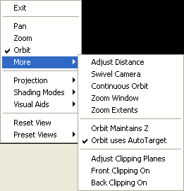 Рис. 2.11. Средства визуализации орбитального режима Пункт меню Shading Modes (Раскрашивание) с помощью шести опций задает вариант раскраски объектов рисунка в процессе их вращения: Wireframe (Каркас) — объекты изображаются в виде совокупности отрезков и линий (кромок граней и тел), раскрашивание отсутствует; Hidden (Скрытие линий) — то же, что и Wireframe (Каркас), но линии невидимых задних граней не отображаются; Flat Shaded (Плоское) — грани раскрашиваются цветом, но с низкой плавностью раскраски; Gouraud Shaded (По Гуро) — грани раскрашиваются цветом; переходы граней сглаживаются с помощью оттенков; плавность раскраски в этом случае выше, чем в предыдущей опции; Flat Shaded, Edges On (Плоское, с кромками) — комбинируются опции Wireframe (Каркас) и Flat Shaded (Плоское) (при раскрашивании линии каркасов просвечивают); Gouraud Shaded, Edges On (По Гуро, с кромками) — комбинируются опции Wireframe (Каркас) и Gouraud Shaded (По Гуро). На рис. 2.12 приведен пример орбитального режима с раскраской.