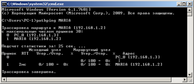 Pathping это утилита, которая позволяет обнаружить потери пакетов на маршруте между вашим компьютером и заданным адресом IP. Потери пакетов могут сильно повлиять на работу сети, например, когда вы играете в видеоигру. Иначе говоря, утилита PathPing отправляет многочисленные сообщения с Echo-запросом каждому маршрутизатору, который находится между исходным пунктом и пунктом назначения, после чего, на основании пакетов, полученных от каждого из них, вычисляет процентное соотношение пакетов, возвращаемых в каждом прыжке. Поскольку утилита PathPing показывает степень потери пакетов на каждом маршрутизаторе или узле, то с ее помощью вы можете точно определить маршрутизаторы и узлы, на которых возникают сетевые проблемы. Пример использования данной команды приведен на рис. 4.