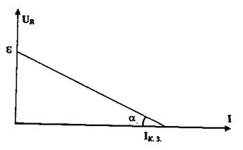 График зависимости UR(I), см. рис. 2, есть прямая линия, отсекающая на оси UR значение, равное ЭДС источника ε, а на оси I-значение, равное силе тока короткого замыкания