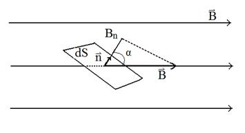 Потоком вектора магнитной индукции (магнитным потоком) через площадку dS называется скалярная физическая величина, равная