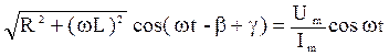 является полным электрическим сопротивлением (импедансом) участка цепи, включающим активное сопротивление R и индуктивное сопротивление ωL катушки индуктивности. На практике с помощью вольтметра и амперметра измеряются эффективные (действующие) значения переменных напряжений и силы тока, связанные с амплитудами следующим образом: