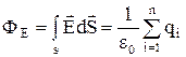 Теорема Остроградского-Гаусса для электростатического поля в вакууме звучит так: поток вектора напряженности электростатического поля через произвольную замкнутую поверхность в вакууме равен алгебраической сумме заключенных внутри этой поверхности зарядов, деленной на e0: