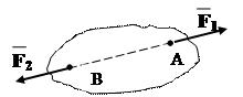 Ця аксіома називається законом інерції тому, щопрямолінійний рівномірний рух без дії сил називають рухом за інерцією. Аксіома 2 (умова рівноваги двох сил) Дві сили, прикладені до твердого тіла, зрівноважуються тільки тоді, коли вони однакові за значенням (модулем) і діють по одній прямій в протилежних напрямках.