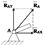 за допомогою болта, пальця, який проходить через отвори в цих тілах. Таке з’єднання дає можливість тілу вільно поверта- тись навколо шарніра, але не дає можливість поступально пе- реміщатись тілу в будь-якому напрямку, перпендикулярному до осі шарніра. Тому реакція лежить в площині, перпендикулярній до осі шарніра, але напрям її невідомий. При визначенні її часто представляють двома взаємно перпендикулярними складовими (як показано на рис.).