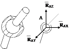 опорною площиною. Така в’язь дозволяє обертатись валу навколо його осі і переміщатись вздовж неї, але тільки в одному напрямі. Реакція підп’ятника склада- ється з реакції циліндричного підшипника, яка лежить в площині, перпендикулярній до йог о осі (в загально- му випадку вона може бути представлена двома скла- довими R AX та R AY) і реакції площини, перпендику- лярної до неї – R AZ.
