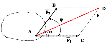 лелограм ABCD з діагоналлю AD, що зображає шукану рівнодійну F å. За теоремою косинусів з D ADC одержимо: