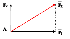 3) j = 900 (j =p/2); cos j = 0; Сили F 1 і F 2 прикладені в одній точці і напрямлені під прямим кутом. Рівнодійна є діагоналлю прямокутника, сторонами якого є задані сили.