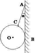 2.19 (М) До вертикальної гладкої стіни АВ підвішена тросі АС однорідна куля О. Трос утворює із стіною кут α = 300, вага кулі Р = 100 Н. Визначити силу натягу троса Т і силу тиску кулі на стіну Q.