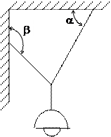 Між двома стінами на шнурах висить ліхтар масою 2 кг. Лівий шнур утворює з стіною кут α = 450, а правий – кут β = 300. Знайти натяги обидвох шнурів.