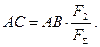 У виразах (а) і (б) праві частини рівні, бо DK = EL. Отже, рівні і ліві частини: AC∙OK = BC∙OL. З рис. видно, що ОК =F1 a OL=F2. Тоді AC∙F1 = BC∙F2 ; звідси одержуємо пропорцію: -25-