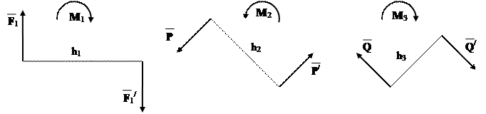Їх моменти: М1 = - F1 h1; M2 = P h2; M3 = - Q h3. На основі наслідків з теореми про еквівалентні пари заміняємо другу і третю пари еквівалентними: