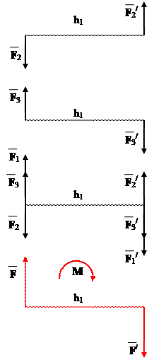 еквівалентну 3-м заданим парам. Її момент MΣ = - F h1 = - (F1 – F2 + F3) ∙ h1 = - F1 h1 + F2 h2 – F3 h3 = = M1 + M2 + M3.