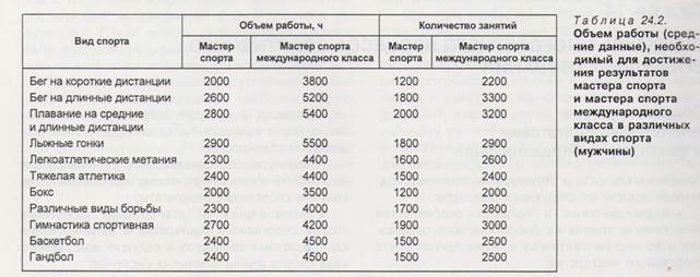 Досягнення високих спортивних результатів потребує дуже великого обсягу роботи (таблиця, рис. 1).