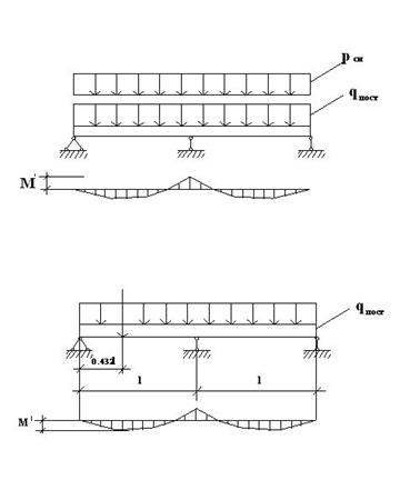 Расчет настилов и обрешеток, работающих на поперечный изгиб, производят по схеме двухпролетной балки при двух сочетаниях нагрузки: − нагрузки от собственного веса покрытия и снеговой нагрузки на прочность и прогиб