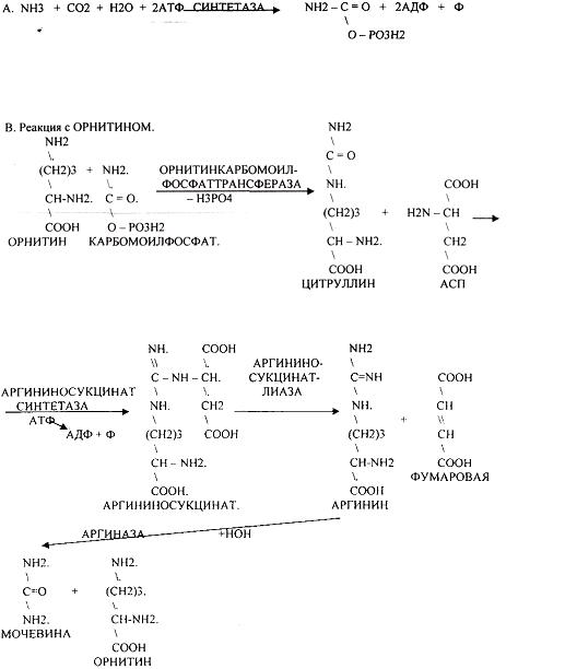 4. Синтез мочевины - основной путь обезвреживания аммиака - ОРНИТИНОВЫЙ ЦИКЛ.