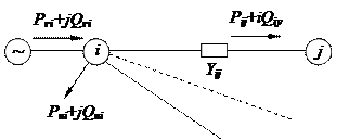 Р г i и Q г i - активная и реактивная мощности, генерируемые в i -м узле; Рнi и Qнi - активная и реактивная мощности нагрузки в i -м узле; Руi и Qуi - активные и реактивные потоки мощности из узла j к узлу j. Уравнения балансов активных и реактивных мощностей в узле i