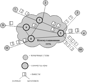 Рис. 3.6. Передача данных по сети в виде пакетов