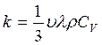 где: dQ – количество теплоты переносимой за время dT через поверхность dS по направлению нормали Х к этой поверхности в сторону убывания температуры; (dT/dх) – градиент температуры; k – коэффициент теплопроводности, равный количеству теплоты, перенесенный через единицу поверхности за единицу времени при градиенте dT/dх =1. Согласно кинетической теории газов: