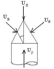 Рис. 26. Теоретическое обоснование условий распространения пламени (при рассмотрении стационарного пламени, когда скорость его распространения Uпл равна скорости подачи газовой смеси Uг: Uпл=Uг (рис. 27)) . В данном случае соотношение между нормальной скоростью горения Uн и скоростью распространения пламени Uпл выразится уравнением: Uн = Uпл*sinφ. (7.1)