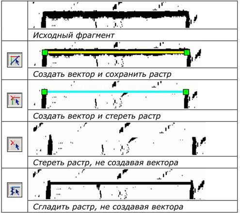 Перед выполнением трассировки необходимо выбрать режим и метод трассировки с помощью соответствующих команд из меню Трассировка или кнопок, расположенных на панели инстру- ментов Растр в векторы. (рис.6)