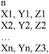 Исходными данными для построения растровой модели являются измерения значений переменной в точках с известными координатами. Эти данные записываются в текстовый файл в кодировке ASCII, состоящий из трех и более колонок (1 - координата Х, 2 - координата Y, Z1... Zn - остальные колонки - это те измеренные величины, используя которые будут рассчитываться значения в узлах регулярной сетки). Структура этого файла следующая: