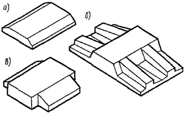 Рисунок 1.8. Конструкции фундаментных плит: а - сплошная; б - ребристая; в – с угловыми вырезами