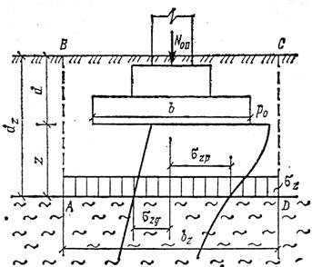 Когда под несущим слоем на какой-либо глубине z залегает менее прочный грунт, тогда рекомендуется проверять напряжения, передаваемые на кровлю слабого грунта, по условию: