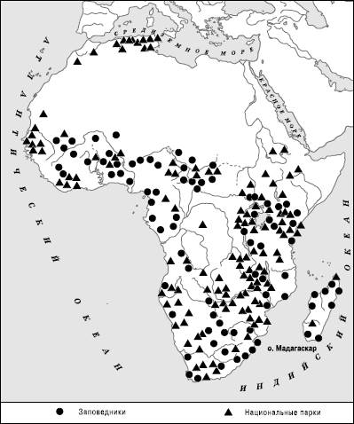 Рис. 1. Заповедники и национальные парки в Африке (по Т. В. Кучер)