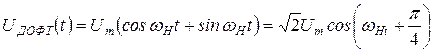 Рис. 7. Структурная схема манипулятора ДОФТ Преобразователи кода преобразуют входной первичный сигнал, как было указано ранее. Каждый из преобразованных сигналов модулирует по фазе на 1800 свою несущую в фазовом манипуляторе. Несущие колебания подаются на манипуляторы от одного генератора, но сдвинуты на 900 относительно друг друга. В результате сложения в сумматоре получается сигнал ДОФТ. При сложении суммарный сигнал сдвигается на 450 относительно синфазной и квадратурной составляющей, но разность фаз не уменьшается. Математически сигнал ДОФТ запишем в виде: