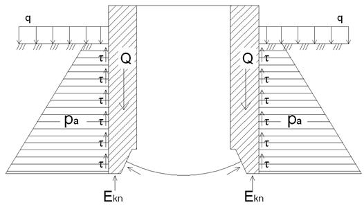 Рисунок 3.4. Схема нагрузок, действующих на опускной колодец во время его погружения