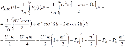 Из выражения (9) видно, что при т = 1 мощность АМК за период ТW состоит из мощности колебания на частоте w модулируемого сигнала Рw и мощности