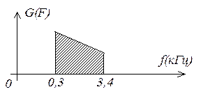 Рис. 6. Условное изображение спектра телефонного сигнала Спектр амплитудно-модулированного сигнала примет вид, показанный на рис. 7.