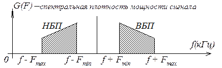 следовательно, сигнал с амплитудной модуляцией энергетически невыгоден. Кроме того, ширина его спектра DF в два раза больше ширины спектра модулирующего сигнала и определяется как DF = 2Fmax (14) где Fmax – максимальная частота модулирующего сигнала. Например, при модуляции стандартным телефонным сигналом (рис. 6).