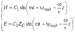 По мере продвижения падающей волны вдоль оси z амплитуды E и H остаются неизменными, так как в диэлектрике нет токов проводимости и выделения энергии в виде теплоты.