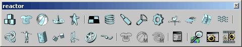 В верхней части окна программы расположено главное меню, а под ним — главная панель инструментов Main Toolbar (Основная панель инструментов). Пункты главного меню частично повторяют инструменты и команды основной панели инструментов, а также панели Command Panel (Командная панель). В левой части окна находится вертикальная панель инструментов (рис. 2), которая содержит настройки модуля reactor для просчета динамических характеристик в сценах.