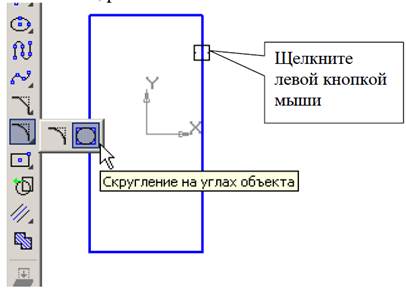 Вибрати прямокутник без осей, рис. 2. Зафіксуйте центр прямокутника на початку координат. Так як поле введення значення висоти активно, відразу наберіть «250», [Enter]. Введіть значення ширини «100», [Enter]. 2. Для виконання заокруглень на прямокутнику зробіть активною команду Скругление на углах объекта. рис. 3.