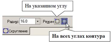 У рядку параметрів введіть величину радіуса «16» і натисніть кнопку На всех углах контура, рис. 4.