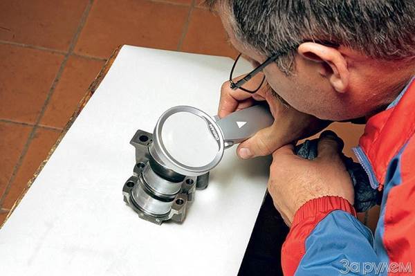 Контрольные замеры пар трения (коренные и шатунные шейки, распредвал, гильзы и поршни) отличаются от первоначальных не более чем на величину погрешности измерения. Справедливости ради заметим, что и на контрольном двигателе уцелевшие шейки также не вышли из поля допуска, что, впрочем, ничуть не противоречит теории. Износ при работе без масла развивается лавинообразно и за несколько секунд превращает новую деталь в металлолом. Отсюда, кстати, предостережение: без крайней необходимости не пытайтесь ехать без масла - момент начала «стука» вы не уловите, а уже при первых его признаках двигателю потребуется серьезный ремонт.