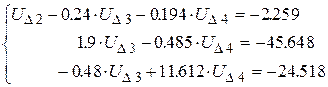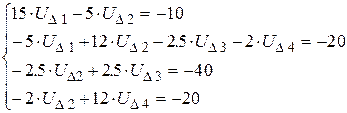 2. Из уравнения связи параметров режима [ 1 ] находятся падения напряжений в ветвях . 3. Из уравнения закона Ома (1.1) определяются токи в ветвях схемы