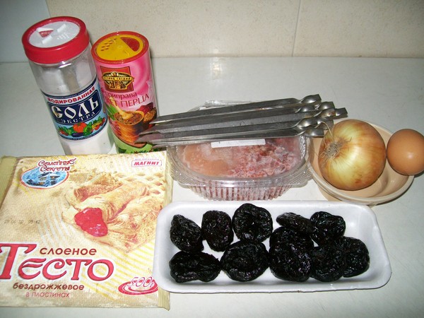 Из смесей фарша,лука,яйца-приготовить окончательный вариант фарша,посолить,поперчить и облепить чернослив на шпажках,придав традиционную форму(люля).