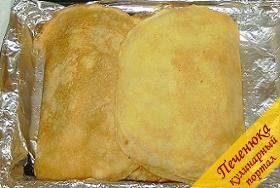 12) Выложить в два слоя трубочки из блинов. Взбить яйцо и залить сверху.