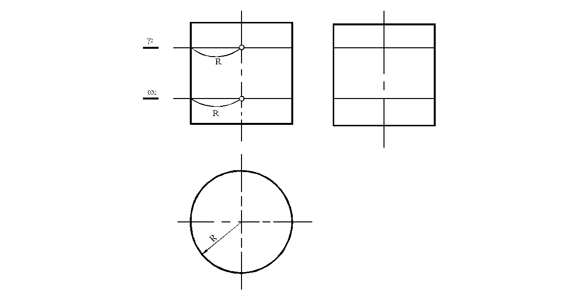 Рис.25 Проецирование тел вращения происходит так же, как и у многогранных тел. Смотря сверху на прямой круговой цилиндр с вертикальной осью, видим круг, а спереди и сбоку - прямоугольники. При вычерчивании проекций прямого кругового цилиндра вначале чертятся оси симметрии тела, затем основание в виде окружности, потом фронтальная и профильная проекции. Точки на поверхности цилиндра находят с помощью образующих и линий связи Пусть ось вращения поверхности i