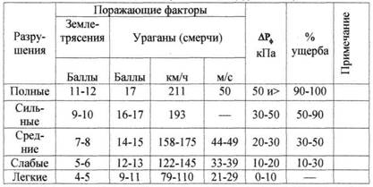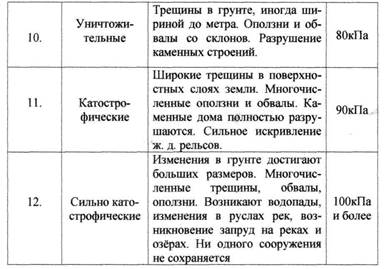 - уничтожающие: 10 баллов; - катастрофические: 11 баллов; - сильно катастрофические: 12 баллов.