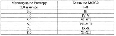 Таблица 4. Соотношение шкал Рихтера и М8К-64